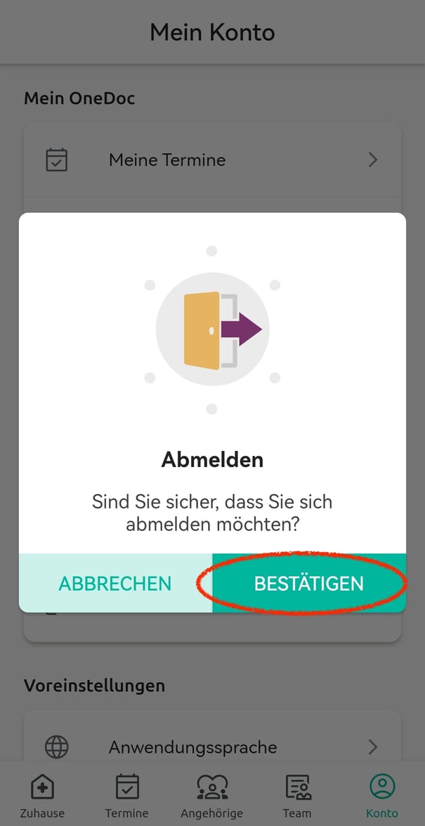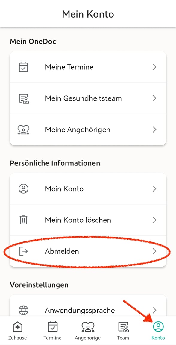 Im Folgenden wird beschrieben, wie Sie sich von Ihrem Patientenkonto in der OneDoc-App abmelden können: