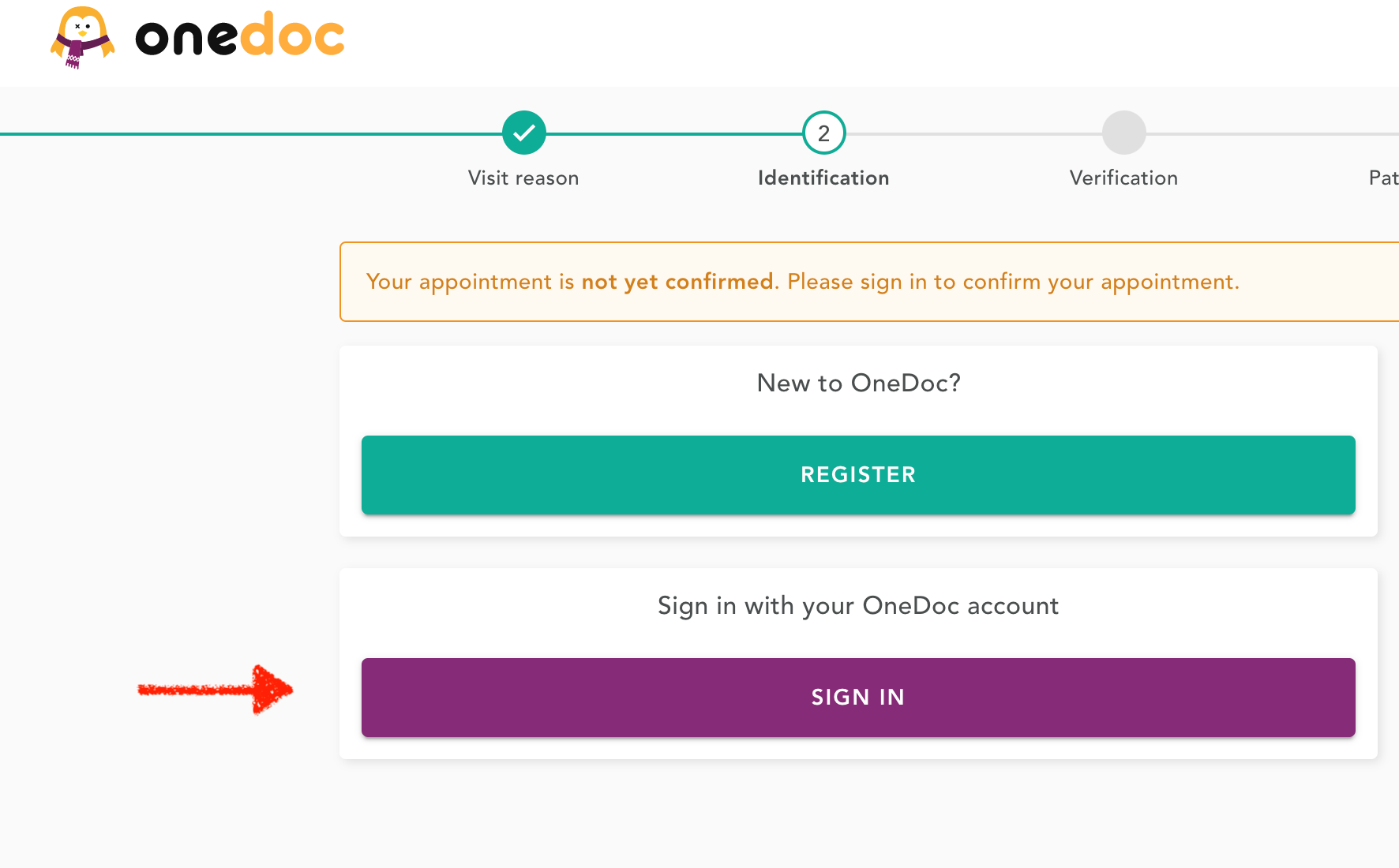 - Click on “SIGN IN” to sign in to your OneDoc account.