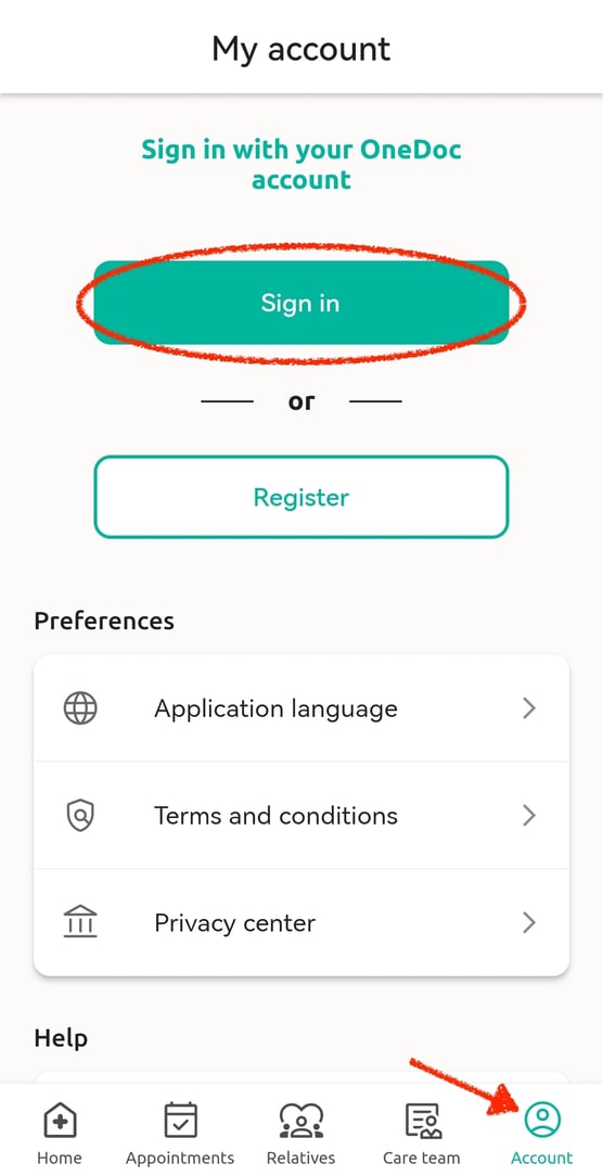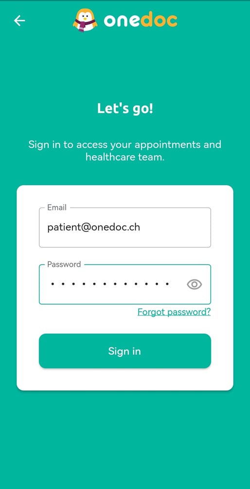 Sign in to the OneDoc app