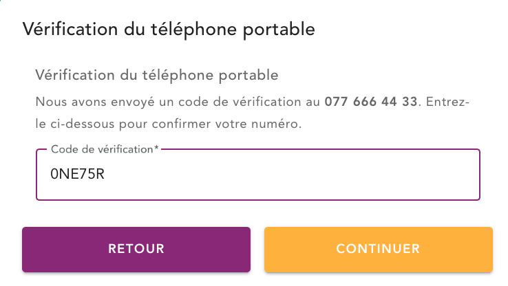 - Vous recevez un code via SMS. Entrez ce code dans le champ "Code de vérification":