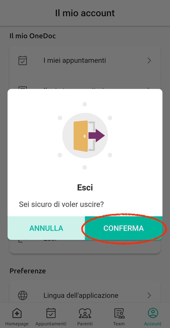 Una volta eseguiti questi semplici passi, sarai disconnesso/a dal tuo account OneDoc!